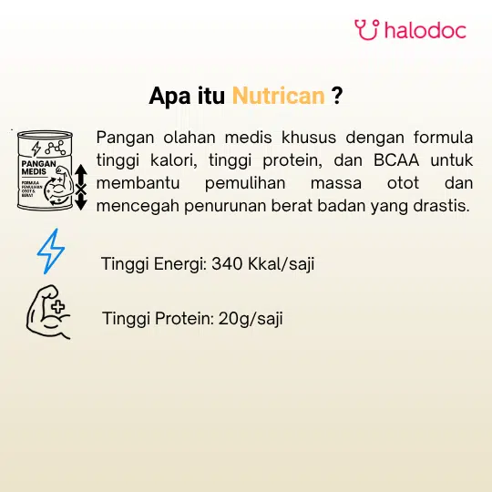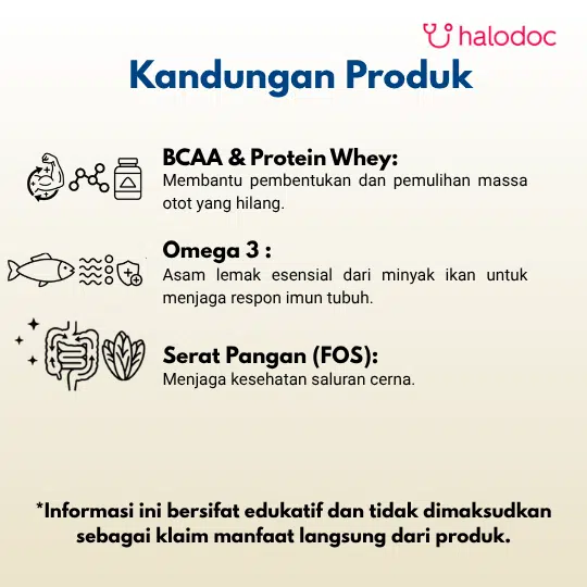 Produk ini merupakan pangan olahan keperluan medis khusus bagi pasien kanker yang kehilangan nafsu makan . Penggunaan produk harus dengan rekomendasi Dokter.