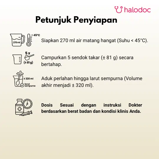Saran penyajian dapat dilihat pada kemasan produk. Diberikan sesuai dengan petunjuk dosis penggunaan, leaflet/brosur dan sesuai atas rekomendasi dokter.