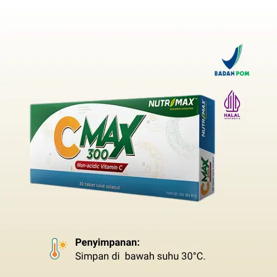 Nutrimax C Max 300 mengandung Suplemen makanan dengan kandungan Calsium Askorbat. Calcium Askorbat merupakan asam askorbat (Vitamin C) dalam bentuk garam kalisum. Calcium askorbat tidak mudah rusak akibat asam lambung sehingga penyerapannya maksimal dan bertahan lebih lama didalam tubuh. Dalam bentuk garam Calcium, Vitamin C ini menjadi bebas asam, sehingga tidak menyebabkan mual, sakit perut, diare, dan aman bagi penderita maag. Suplemen ini digunakan untuk membantu meningkatkan daya tahan tubuh dan membantu pemulihan saat sakit.