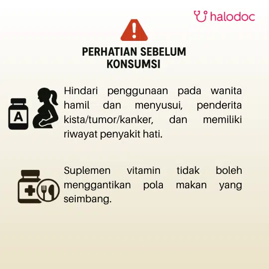- Tidak dianjurkan untuk ibu hamil & meyusui, serta penderita kista/tumor/kanker, dan memiliki riwayat penyakit hati.