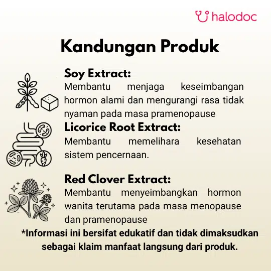 - Membantu mengatasi gejala menopause (rasa panas, sering berkeringat, muka kemerahan, sulit tidur, emosi tidak stabil).