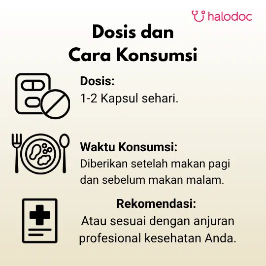1-2 kapsul sehari 30 menit sebelum makan siang dan malam