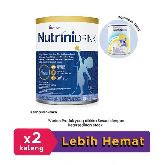 Produk ini merupakan pangan olahan keperluan medis khusus untuk dukungan nutrisi anak beresiko gagal tumbuh, gizi kurang dan/ atau gizi buruk. Pemakaian produk ini harus di bawah pengawasan Dokter ahli gizi atau praktisi medis. Tidak cocok untuk bayi dan pasien galaktosemia. Tidak disarankan untuk mengkonsumsi produk ini jika asupan energi sudah cukup. Untuk penggunaan lebih lanjut dengan dokter atau ahli gizi.PETUNJUK PENYIMPANAN:Simpan Nutrinidrink sediaan bubuk di tempat dingin dan kering (kurang dari 25 C). Jangan disimpan di lemari es.Nutrinidrink yang sudah dibuka harus disimpan dalam kemasan tertutup dan habiskan dalam waktu 1 (satu) bulan.