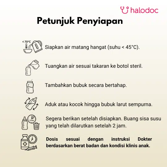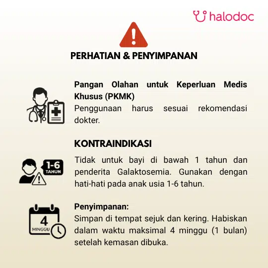Hanya digunakan sesuai petunjuk dokter atau ahli gizi dan bervariasi sesuai dengan kebutuhan masing-masing individu.