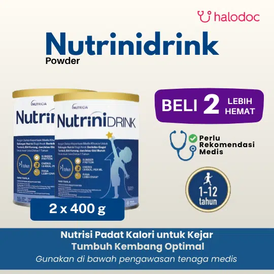 Produk ini merupakan pangan olahan keperluan medis khusus untuk dukungan nutrisi anak beresiko gagal tumbuh, gizi kurang dan/ atau gizi buruk. Pemakaian produk ini harus di bawah pengawasan Dokter ahli gizi atau praktisi medis. Tidak cocok untuk bayi dan pasien galaktosemia. Tidak disarankan untuk mengkonsumsi produk ini jika asupan energi sudah cukup. Untuk penggunaan lebih lanjut dengan dokter atau ahli gizi.PETUNJUK PENYIMPANAN:Simpan Nutrinidrink sediaan bubuk di tempat dingin dan kering (kurang dari 25 C). Jangan disimpan di lemari es.Nutrinidrink yang sudah dibuka harus disimpan dalam kemasan tertutup dan habiskan dalam waktu 1 (satu) bulan.