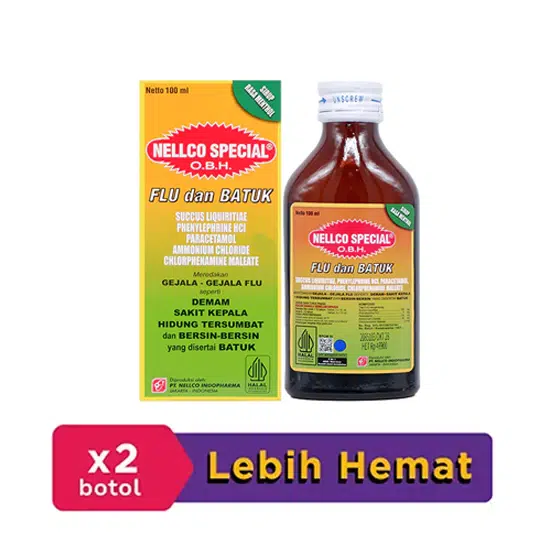 OBH NELLCO SPECIAL PE merupakan obat sirup yang mengandung Ammonium Chloride, Chlorphenamine Maleate, Glycyrrhizae Succus, Paracetamol, dan Phenylephrine HCl. Obat ini meringankan gejala flu seperti demam, sakit kepala, hidung, dan bersin-bersin yang disertai batuk.