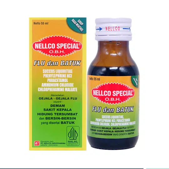 OBH NELLCO SPECIAL PE merupakan obat sirup yang mengandung Ammonium Chloride, Chlorphenamine Maleate, Glycyrrhizae Succus, Paracetamol, dan Phenylephrine HCl. Obat ini meringankan gejala flu seperti demam, sakit kepala, hidung, dan bersin-bersin yang disertai batuk.