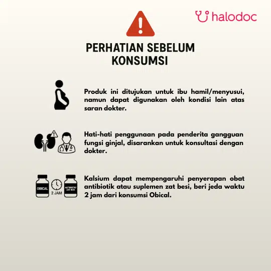 OBICAL adalah suplemen kalsium yang diformulasikan untuk membantu memenuhi kebutuhan kalsium harian, terutama bagi wanita hamil, ibu menyusui, dan lansia.