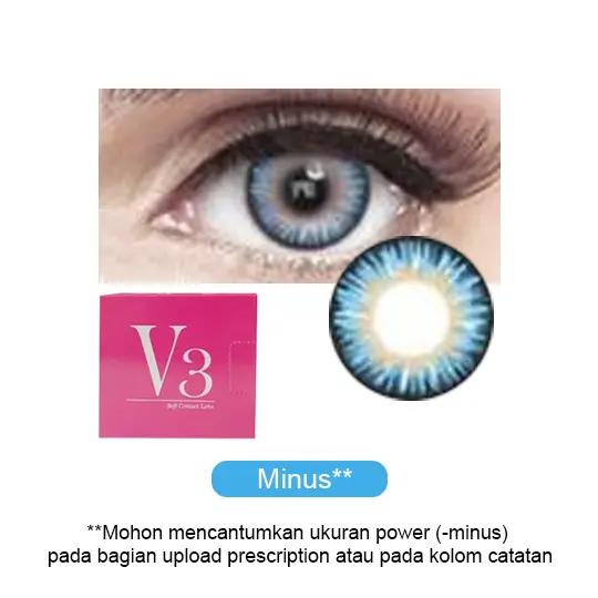 Softlens Omega V3 Softlens merupakan softlens warna dengan masa penggunaan selama 6 Bulan. Softlens ini memiliki 4 pilihan warna yaitu Melanie Brown, Victoria Grey, Emma Blue, Geri Green. Softlens ini memiliki diameter 14.50 mm dan kadar air 60%.