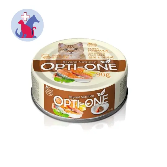 OPTI ONE CAT TUNA WITH SALMON & FLAXSEED merupakan makanan basah untuk kucing dengan varian rasa ikan tuna yang dikombinasikan dengan ikan salmon dan flaxseed.