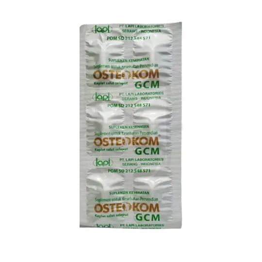 OSTEOKOM GCM merupakan suplemen untuk membantu memelihara kesehatan persendian. Dengan Triple Action, mengandung GLUKOSAMIN, KONDROITIN dan MSM serta multivitamin dan mineral.
