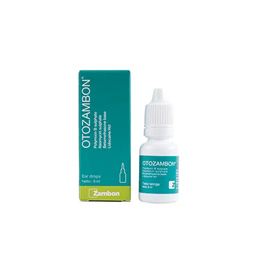 Informasi ini ditujukan bagi Tenaga Medis dan Kesehatan. Obat ini tergolong Obat Keras, sehingga penggunaan obat harus berdasarkan hasil konsultasi atau resep dokter. OTOZAMBON EAR DROPS adalah obat tetes telinga yang mengandung kombinasi antibiotik, antijamur, kortikosteroid, dan anestesi lokal. Obat ini digunakan untuk mengobati infeksi dan peradangan pada telinga. Informasi umum terkait kandungan: Produk ini bekerja melalui kombinasi beberapa zat aktif. Polymyxin B Sulfate dan Neomycin Sulfate adalah antibiotik yang bekerja membunuh bakteri penyebab infeksi. Fludrocortisone Acetate adalah kortikosteroid yang berfungsi menekan reaksi peradangan, sehingga mengurangi pembengkakan dan kemerahan. Lidocaine HCl adalah anestesi lokal yang memberikan efek mati rasa sementara untuk meredakan rasa sakit pada telinga.