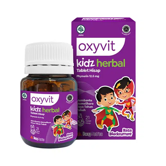 Oxyvit Kidz Herbal adalah tablet hisap herbal yang terbuat dari Phynurin merupakan fraksi protein bioaktif dari Phyllantus niruri yang bekerja sebagai imunomodulator, yang paling cocok untuk membantu memelihara daya tahan tubuh anak.