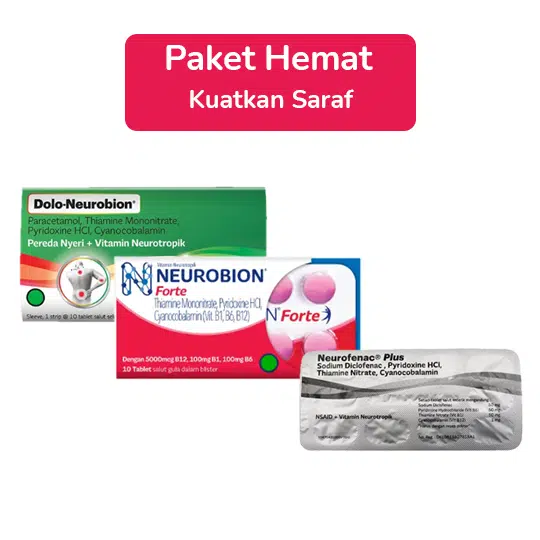 Paket Hemat Kuatkan Saraf adalah paket terapi intensif yang menggabungkan vitamin neurotropik dosis tinggi dengan agen pereda nyeri (analgesik) dan anti-inflamasi. Paket ini ditujukan untuk menutrisi sel saraf sekaligus meredakan rasa sakit yang berkaitan dengan gangguan saraf (neuralgia) dan peradangan saraf (neuritis). Paket ini terdiri dari Dolo-Neurobion, Neurobion Forte, dan Neurofenac Plus 50 mg.