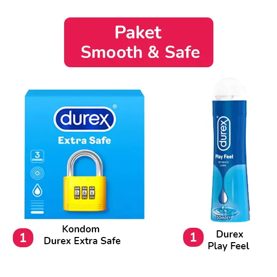 Paket ini menawarkan perlindungan dan kenyamanan. Paket ini terdiri dari Kondom Durex Extra Safe Isi 3 dan Durex Play Feel 50 ml.