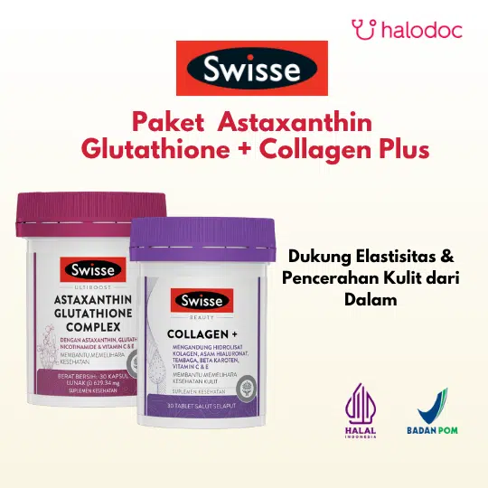 Paket ini merupakan kombinasi suplemen yang diformulasikan untuk nutrisi kulit dan dukungan antioksidan. Paket ini terdiri dari Swisse Ultiboost Astaxanthin Glutathione Complex dan Swisse Beauty Collagen+.
