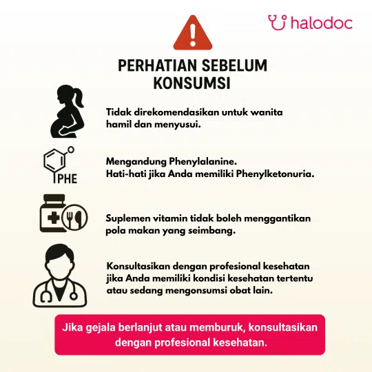 Suplemen kesehatan yang mengandung chromium tidak dianjurkan digunakan secara rutin. Suplemen vitamin sebaiknya tidak menggantikan asupan yang seimbang. Jika Anda memiliki kekhawatiran atau pertanyaan, tanyakan kepada dokter atau apoteker untuk menentukan apakah suplemen ini tepat untuk Anda. Simpan pada suhu di bawah 30�C. Jangan digunakan bila segel rusak.
