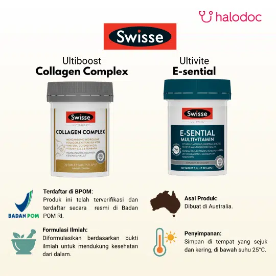 BPOM: SI214587081 (Swisse Ultiboost Collagen Complex 30 Tablet), SI225020551 (Swisse Ultivite E-sential 30 Tablet)