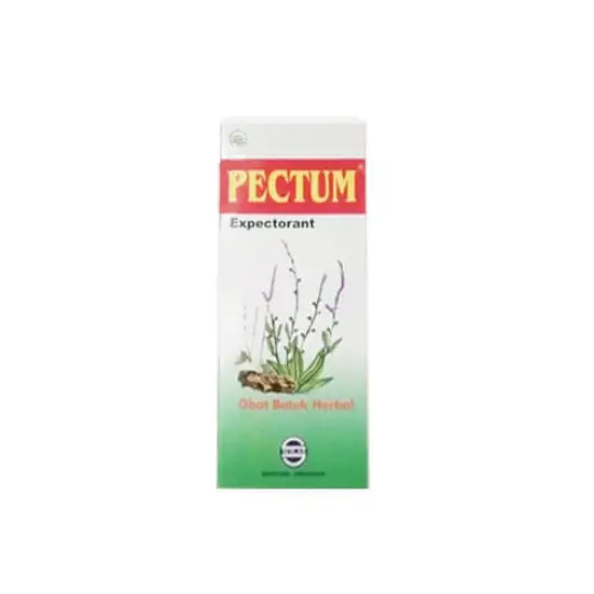 Pectum adalah sediaan herbal yang diformulasikan untuk membantu meredakan batuk berdahak, pilek, dan membantu melegakan tenggorokan. Produk ini memadukan ekstrak tumbuhan alami pilihan: Ekstrak Akar Manis (Glycyrrhiza glabra Radix Extractum Siccum) yang berfungsi sebagai ekspektoran dan anti-inflamasi; Madu (Mel Depuratum) sebagai pelapis tenggorokan alami yang menenangkan iritasi dan memiliki efek antimikroba ringan; Ekstrak Daun Sirih (Piperis Betlidis Folium Extractum Siccum) dengan sifat antiseptik dan membantu mengurangi lendir; Ekstrak Herba Timi (Thymus vulgaris Herbae Extractum Liquidum) sebagai ekspektoran dan antispasmodik; serta Ekstrak Rimpang Jahe (Zingiberis officinalis Rhizomae Extractum Siccum) yang bersifat anti-inflamasi dan menghangatkan. Kombinasi sinergis bahan-bahan ini bertujuan untuk memberikan bantuan komprehensif dalam meredakan gejala batuk berdahak, pilek, dan memberikan kelegaan pada tenggorokan.