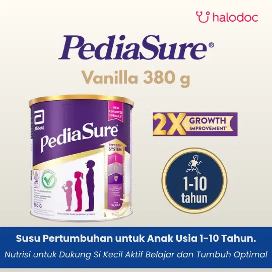 Tersedia 2 kemasan yaitu Pediasure Vanila 400 g (kemasan lama) dan Pediasure Vanila 380 g (kemasan baru). Produk yang dikirimkan sesuai dengan ketersediaan stock Apotek