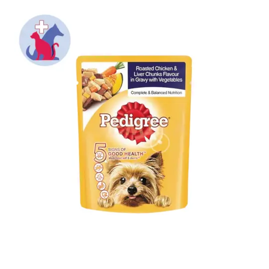 Pedigree Roasted Chicken & Liver Flavour In Gravy with Vegetables for Adult Dog Pouch 80 g