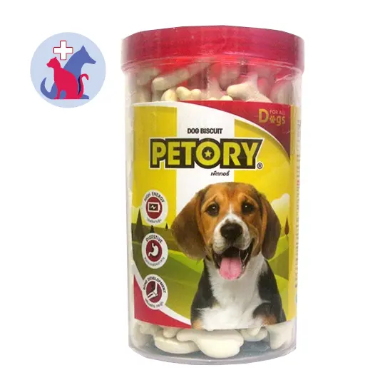 PETORY DOG BISCUIT merupakan makanan kering khusus untuk anjing dalam bentuk biskuit dengan berbagai macam rasa yang dikonsumsi sebagai cemilan untuk anjing