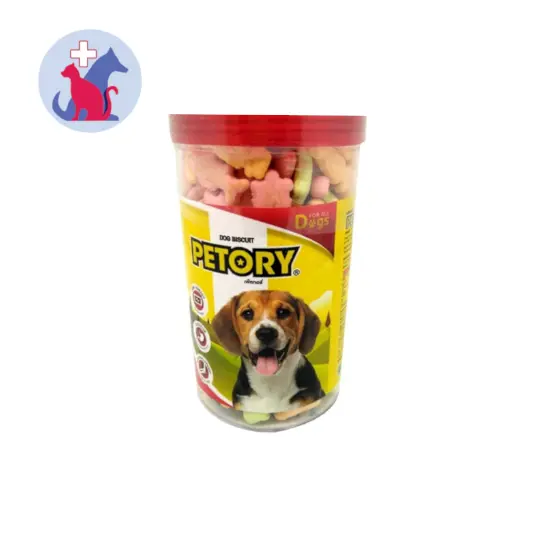 PETORY DOG BISCUIT merupakan makanan kering khusus untuk anjing dalam bentuk biskuit dengan berbagai macam rasa yang dikonsumsi sebagai cemilan untuk anjing