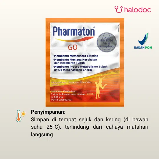 Pharmaton GO adalah suplemen makanan dalam bentuk kaplet yang dirancang untuk membantu memelihara stamina dan daya tahan tubuh. Suplemen ini diformulasikan dengan kombinasi ekstrak ginseng G115 yang dipatenkan, multivitamin, dan mineral esensial.