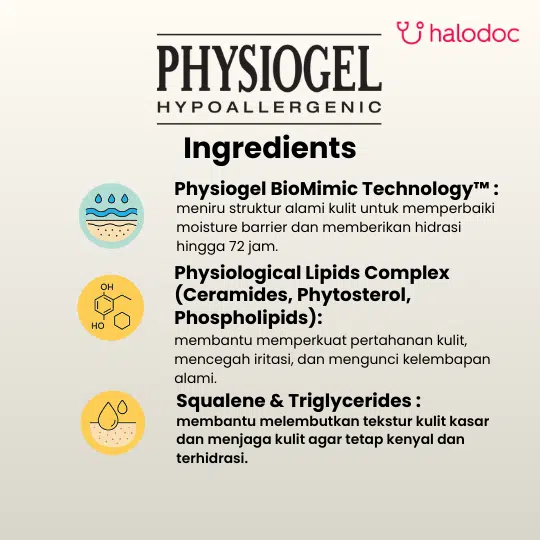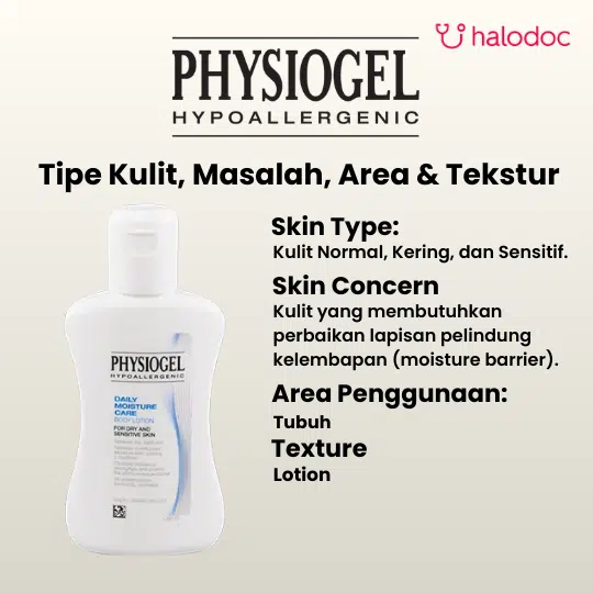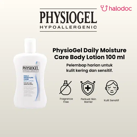 PHYSIOGEL DAILY MOISTURE CARE BODY LOTION merupakan lotion yang digunakan sebagai pelembab untuk menjaga kulit kering dan kulit sensitif. Lotion ini dapat digunakan untuk kulit sensitif di seluruh bagian tubuh termasuk wajah dan menjaga agar kulit tetap terasa lembab.
