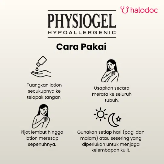 PHYSIOGEL DAILY MOISTURE CARE BODY LOTION merupakan lotion yang digunakan sebagai pelembab untuk menjaga kulit kering dan kulit sensitif. Lotion ini dapat digunakan untuk kulit sensitif di seluruh bagian tubuh termasuk wajah dan menjaga agar kulit tetap terasa lembab.