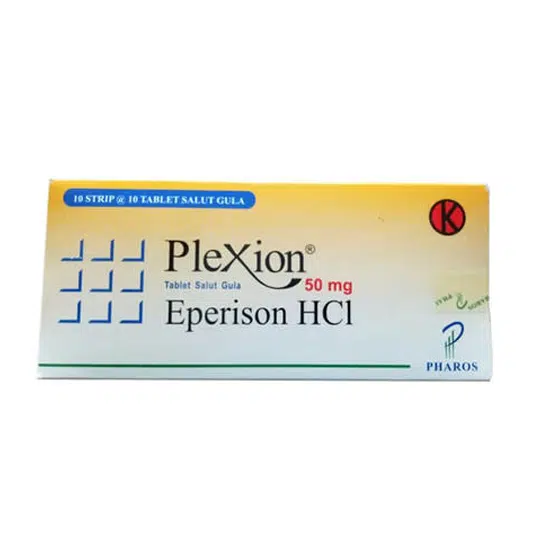 PLEXION 50 MG 10 TABLET adalah obat pelemas otot (antispasmodik) yang mengandung Eperisone HCl.