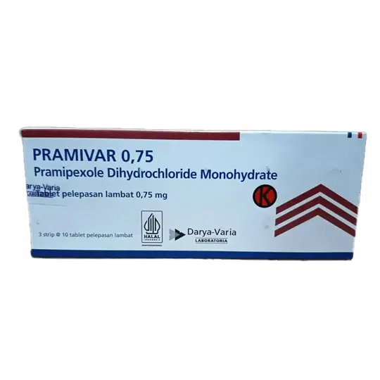 Pramivar adalah obat agonis dopamin non-ergoline dengan dosis yang lebih tinggi. Obat ini digunakan untuk mengobati penyakit Parkinson dan Restless Legs Syndrome (RLS). Obat ini tergolong Obat Keras (HARUS DENGAN RESEP DOKTER). Informasi Umum Terkait Kandungan*: *Pramipexole bekerja dengan menstimulasi reseptor dopamin di otak, khususnya reseptor D2 dan D3, meniru aksi dopamin alami, membantu mengontrol gerakan yang terganggu pada penyakit Parkinson.