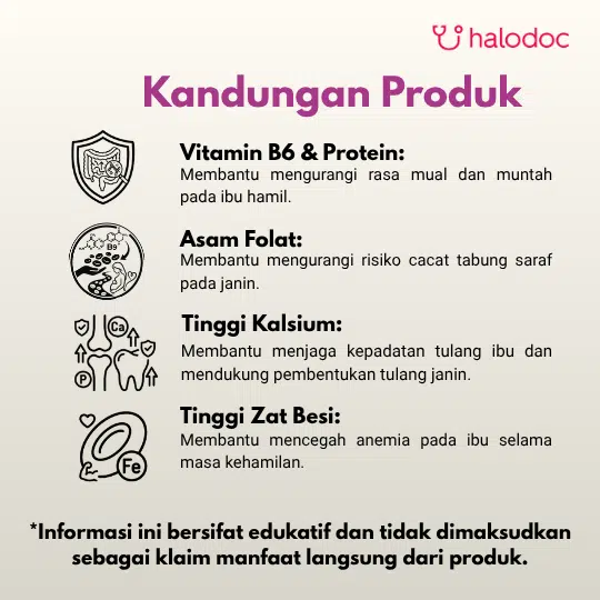 Mengandung Vitamin B6, protein, asam folat, zat besi, kalsium, vitamin D3, Omega 3, dan Iodium.
