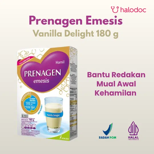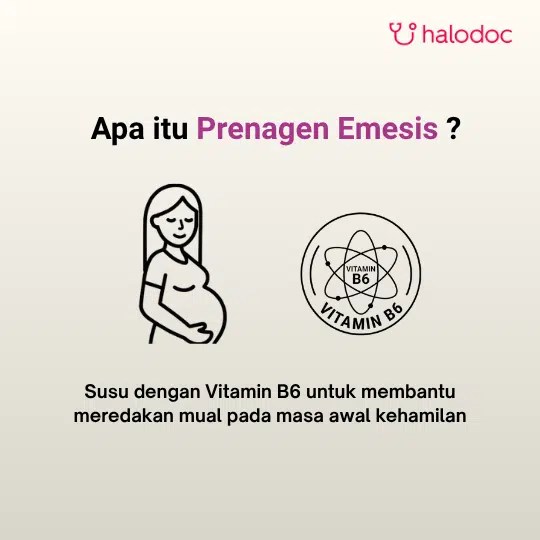 PRENAGEN EMESIS, merupakan susu untuk ibu hamil trimester awal dengan kandungan Protein dan Vitamin B6 yang sudah teruji secara klinis dapat mengurangi frekuensi mual dan muntah hingga 90%, sehingga nutrisi Ibu dan Janin tetap terpenuhi.