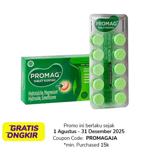PROMAG TABLET adalah obat maag dalam bentuk tablet kunyah yang diformulasikan untuk membantu meredakan gejala sakit maag dan kembung dengan cepat.