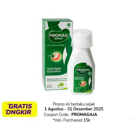 PROMAG merupakan obat sakit maag yang mengandung Hydrotalcite, Magnesium Hydroxide, dan Simethicone. Obat ini diigunakan untuk meringankan gejala sakit maag akibat kelebihan asam lambung seperti perih, mual, kembung, dan nyeri ulu hati.