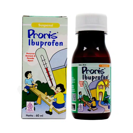 Proris Suspensi 60 ml adalah obat yang mengandung Ibuprofen 100 mg per 5 ml. Obat ini digunakan untuk menurunkan demam dan meredakan nyeri ringan hingga sedang pada anak. Bekerja dengan menghambat enzim siklooksigenase, sehingga mengurangi produksi prostaglandin yang menyebabkan gejala peradangan. Dalam penggunaan obat ini harus SESUAI DENGAN PETUNJUK DOKTER.