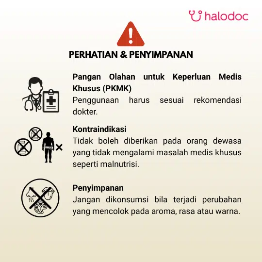 Produk ini merupakan olahan pangan medis khusus bagi pasien malnutrisi.