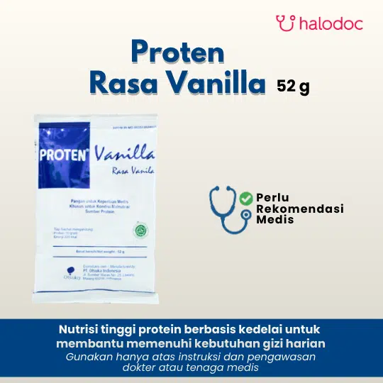 PROTEN RASA VANILA merupakan produk pangan untuk keperluan medis khusus yang diperuntukkan sebagai tata laksana diet pada kondisi malnutrisi yang membutuhkan asupan energi dan nutrisi tertentu.
