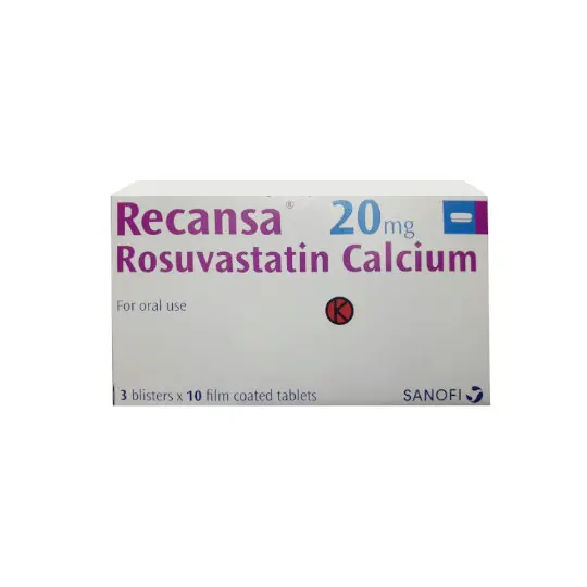 Recansa adalah salah satu sediaan tablet salut yang mengandung Rosuvastatin Kalsium. Recansa digunakan untuk mengobati hiperkolesterolemia primer (tipe IIa) atau dislipidemia campuran (tipe IIb) sebagai tambahan terhadap diet ketika respons terhadap diet dan olahraga tidak memadai. Pengurangan kolesterol Low-density Lipoprotein (LDL) tinggi, kolesterol total, trigliserida dan meningkatkan kolesterol High-density Lipoprotein (HDL).Dalam penggunaan obat ini harus SESUAI DENGAN PETUNJUK DOKTER. Pembelian obat ini memerlukan edukasi terkait penggunaan atau pengonsumsian obat yang tepat dan aman yang akan dikenakan biaya.