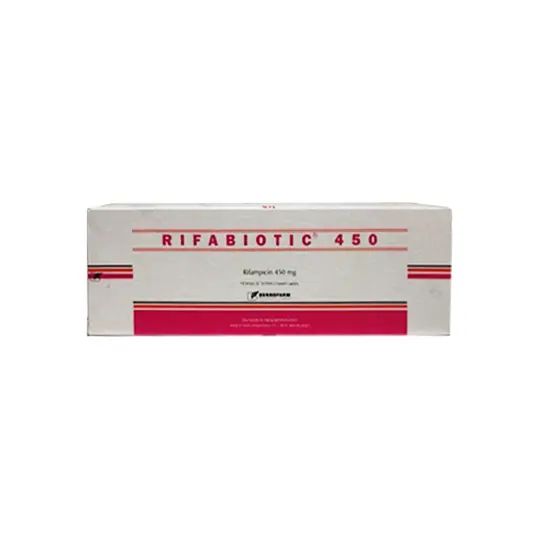 RIFABIOTIC 450 MG merupakan obat dengan kandungan bahan aktif rifampicin 450 mg. Rifampicin adalah antibiotik golongan inhibitor sintesis RNA, sehingga akan menyebabkan penghambatan pembentukan protein pada bakteri. Rifabiotic mengandung rifampisin yang dapat di gunakan untuk pengobatan tubercolosis (TB) dan juga lepra. Dalam penggunaan obat ini HARUS SESUAI DENGAN PETUNJUK DOKTER. Pembelian obat ini memerlukan edukasi terkait penggunaan atau pengonsumsian obat yang tepat dan aman yang akan dikenakan biaya.