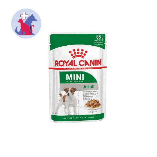 ROYAL CANIN ADULT DOG MINI ADULT IN GRAVY merupakan makanan basah dengan nutrisi lengkap untuk anjing dewasa jenis kecil dengan berat dari 1 hingga 10 kg dan berusia dari 10 bulan hingga 12 tahun.