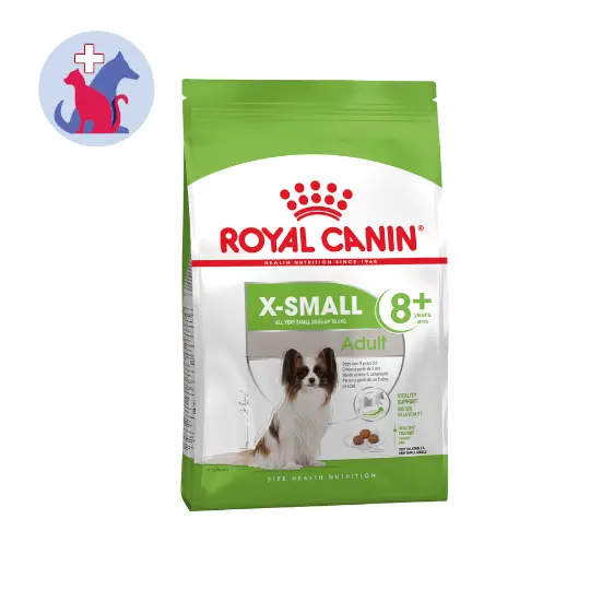 ROYAL CANIN ADULT DOG X-SMALL 8+ merupakan makanan kering khusus untuk anjing dewasa ras kecil dengan berat hingga 4 kg yang berusia lebih dari 8 tahun.