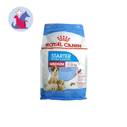 ROYAL CANIN MEDIUM DOGS STARTER MOTHER & BABYDOG merupakan makanan kering khusus untuk anjing sedang dengan berat badan dewasa antara 11-25 kg, anjing betina selama masa gestasi dan menyusui dan menyapih anak anjing hingga usia 2 bulan.