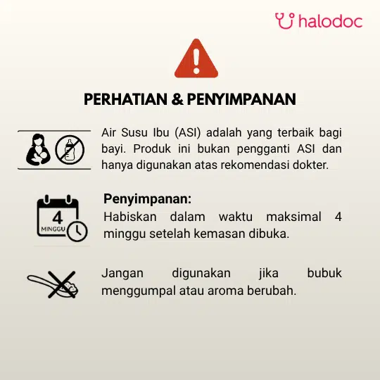 Tidak cocok untuk bayi berumur kurang dari 6 bulan. Siapkan hanya satu gelas setiap kali pemberian. Berikan segera dan ikuti cara penyiapan dengan cepat. Buanglah sisa susu yang tidak habis