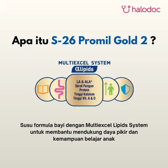 S26 Promil Gold Tahap 1 merupakan susu formula lanjutan untuk bayi yang sudah memasuki usia 6-12 bulan, merupakan makanan pendamping dan juga susu pendamping Air Susu Ibu (ASI) tetapi tidak dapat menjadi pengganti ASI.