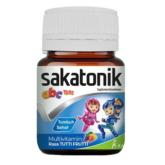 SAKATONIK ABC adalah multivitamin anak yang mengandung vitamin a, vitamin b kompleks, vitamin c, vitamin d, vitamin e, dan kalsium. Multivitamin ini membantu memenuhi kebutuhan vitamin pada anak di masa pertumbuhan, menjaga kesehatan, dan vitalitas anak, serta membantu pemulihan kondisi anak setelah sakit.