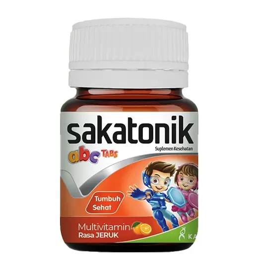 SAKATONIK ABC adalah multivitamin anak yang mengandung vitamin a, vitamin b kompleks, vitamin c, vitamin d, vitamin e, dan kalsium. Multivitamin ini membantu memenuhi kebutuhan vitamin pada anak di masa pertumbuhan, menjaga kesehatan, dan vitalitas anak, serta membantu pemulihan kondisi anak setelah sakit.