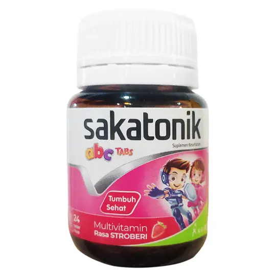 SAKATONIK ABC adalah multivitamin anak yang mengandung vitamin a, vitamin b kompleks, vitamin c, vitamin d, vitamin e, dan kalsium. Multivitamin ini membantu memenuhi kebutuhan vitamin pada anak di masa pertumbuhan, menjaga kesehatan, dan vitalitas anak, serta membantu pemulihan kondisi anak setelah sakit.