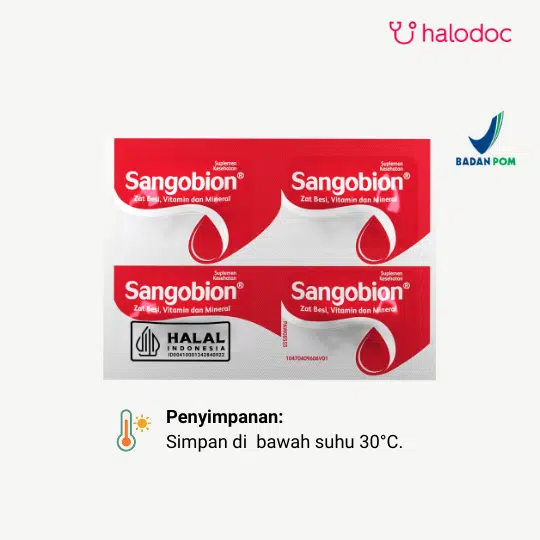 SANGOBION adalah suplemen multivitamin dan mineral yang diformulasikan untuk membantu memenuhi kebutuhan zat besi dan nutrisi penting lainnya yang berperan dalam pembentukan sel darah merah sehingga dapat membantu mengatasi anemia saat menstruasi, hamil, menyusui, masa pertumbuhan, dan setelah mengalami pendarahan.